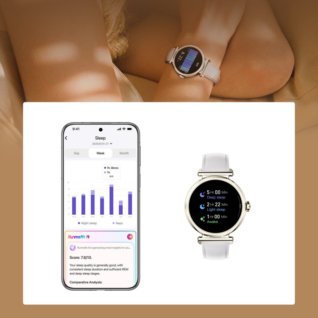 内置智能睡眠监测系统,自动识别深睡、浅睡与快速眼动阶段,评估睡眠质量与恢复效率。结合AI 智能分析,提供个性化睡眠建议,让休息更科学、恢复更高效。