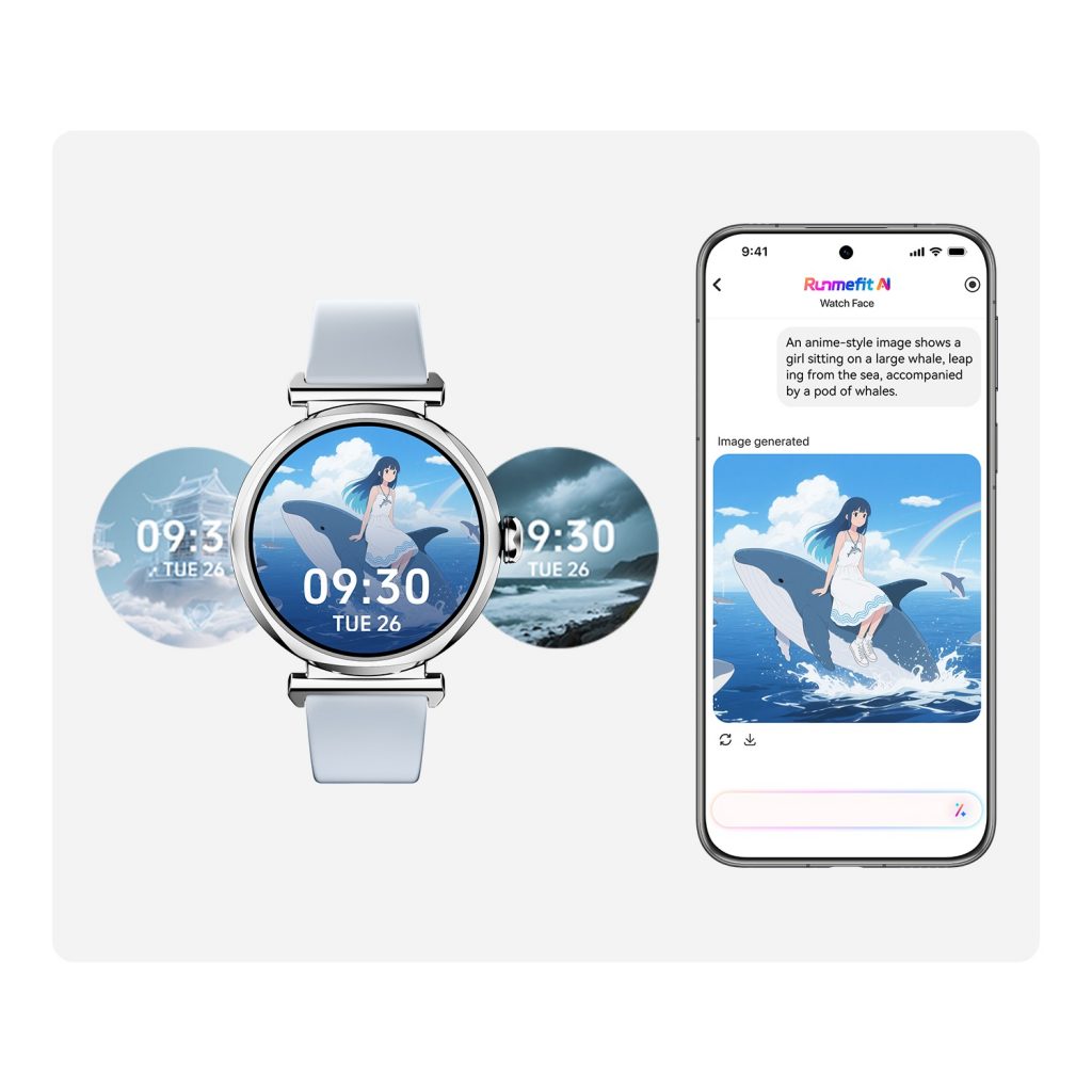 AI自动生成专属表盘风格,随季节、心情或穿搭自由切换,让科技与传达完美融合。